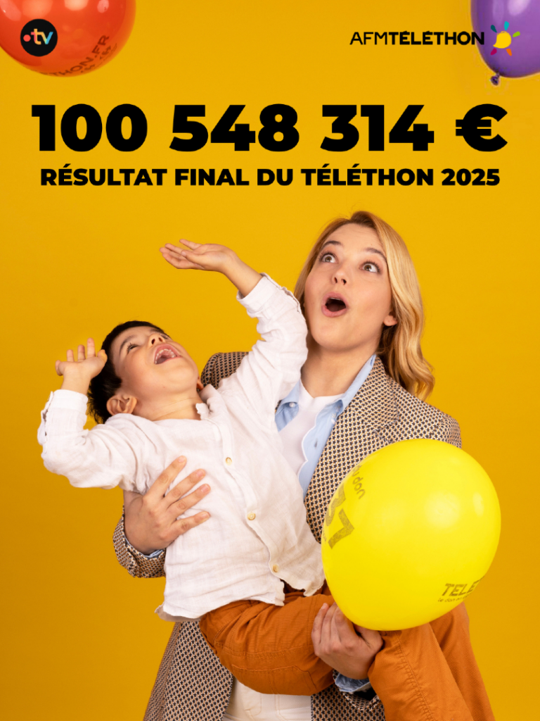 Téléthon 2025: 100 548 314€ Un grand merci aux donateurs, aux 200 000 bénévoles mobilisés chaque année pendant les 30h dont les coordinations, aux 600 salariés et 3000 bénévoles de l’association AFM-TÉLÉTHON, aux chercheurs… Merci à tous Partagez :